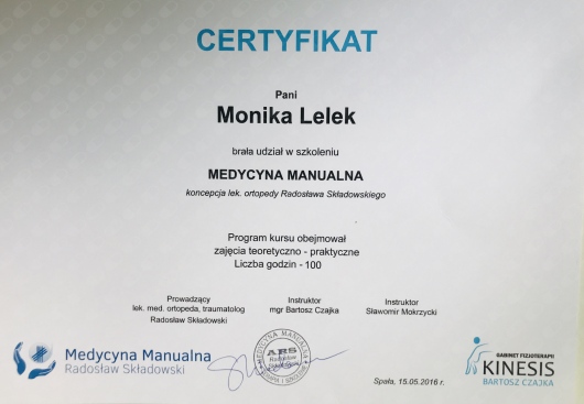 Medycyna manualna wg Radosława Składowskiego – moduły I–IV